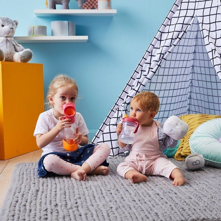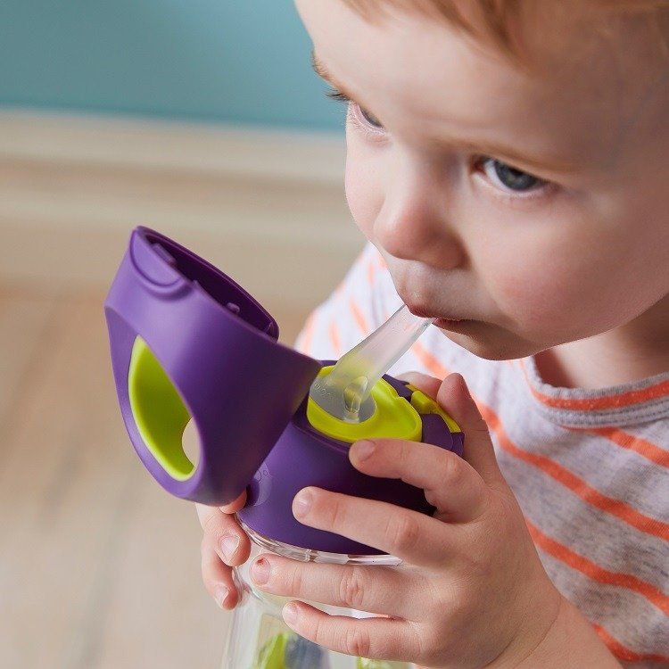 Otwierana wodoszczelna pokrywka utrzymuje słomkę w czystości. Posiada przycisk do łatwego otwierania i praktyczny uchwyt do wygodnego przenoszenia. Trójkątny kształt butelki ułatwia trzymanie w małych dłoniach, a zdejmowana osłonka zapewnia dodatkową ochronę. Słomka ułożona pod kątem pozwala wypić zawartość do ostatniej kropli.