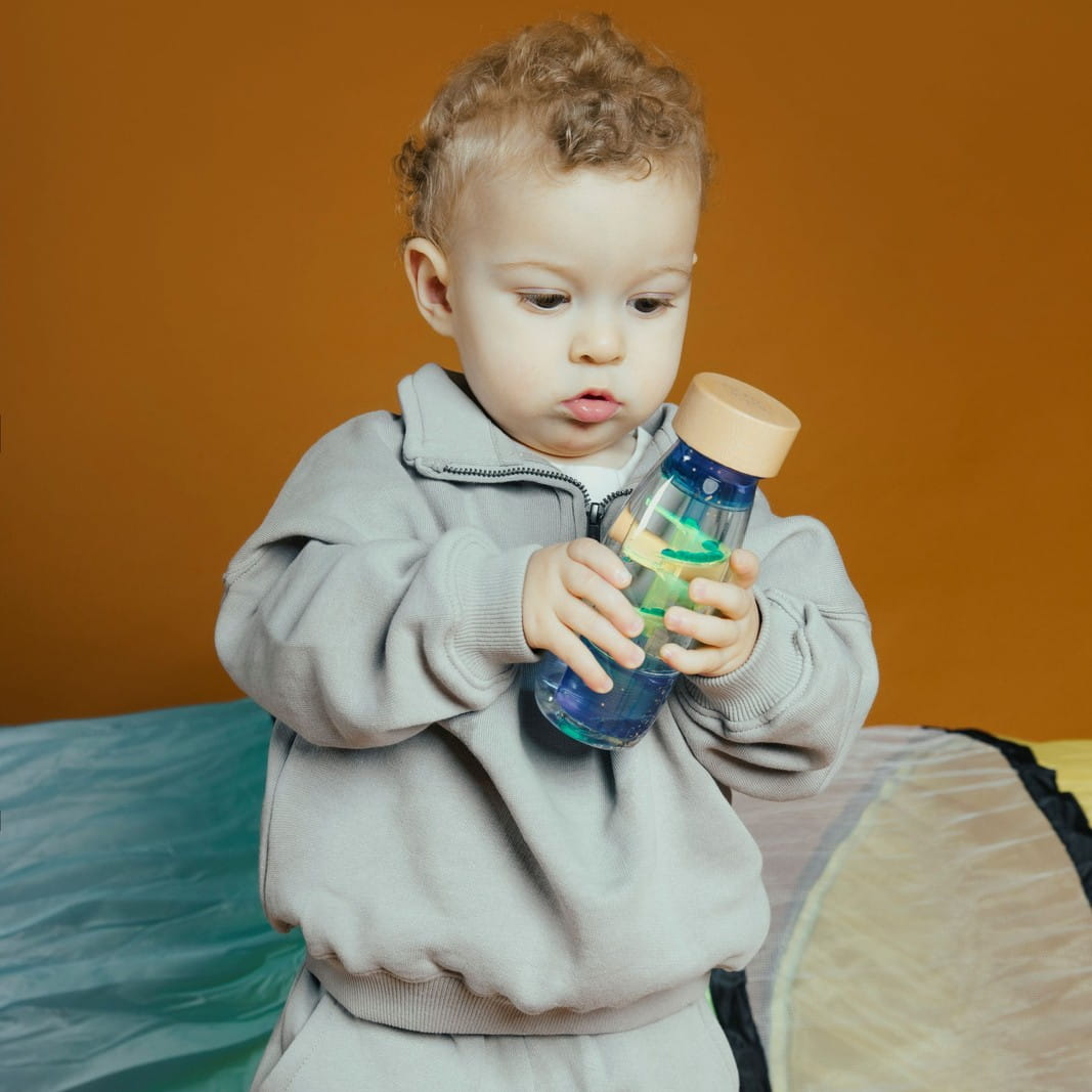 Odkryj butelki sensoryczne Petit Boum – magiczny świat kolorów, ruchu i światła zamknięty w szczelnej butelce! Idealna zabawka sensoryczna dla maluszków, która bawi, uczy i stymuluje wyobraźnię. ✅