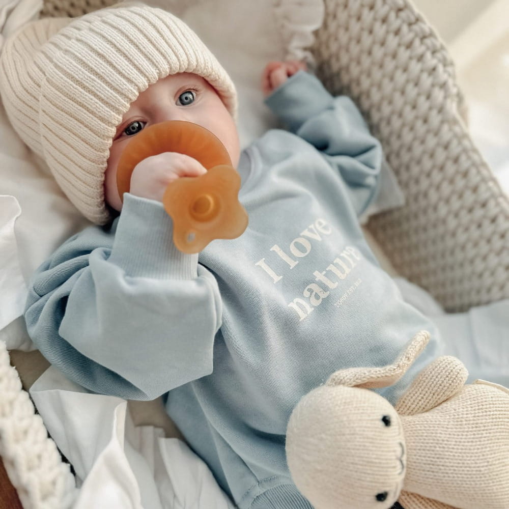 Produkt można prać w pralce automatycznej, w temp. do 30 st. C. Prać w delikatnych płynach dedykowanych dla dzieci, można dodać płynu zmiękczającego, pranie w płynach organicznych mile widziane. Prać oddzielnie. Nie wybielać i nie czyścić chemicznie. Suszyć rozwieszone. Nie zaleca się suszenia w suszarce. Prasować na lewej stronie.