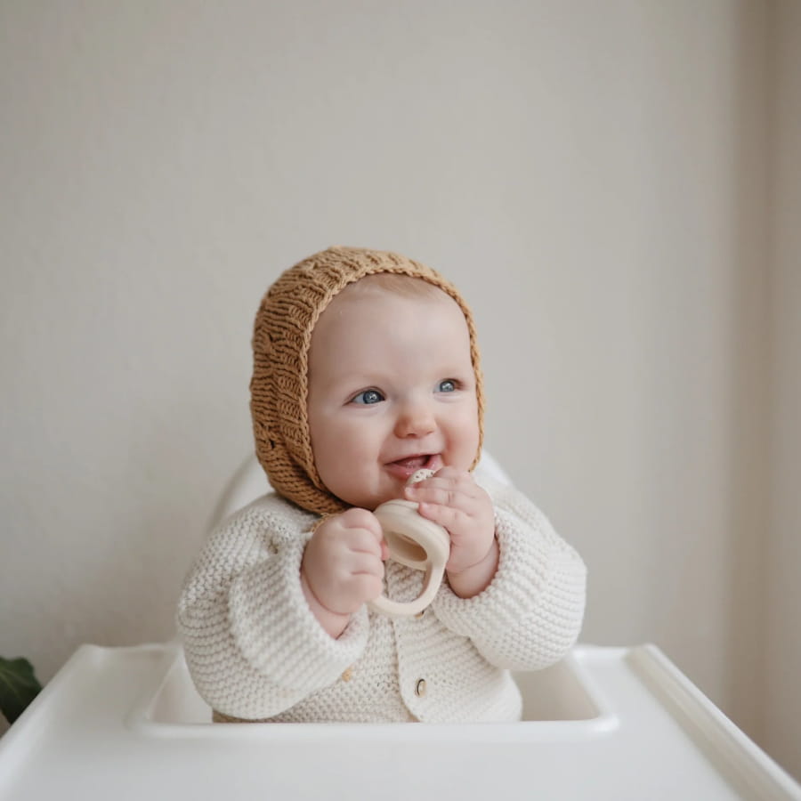 Dwuczęściowa budowa gryzaka ułatwia czyszczenie, a ergonomiczny kształt sprawia, że jest doskonały do małych rączek. Małe otworki pozwalają na kontrolowane uwalnianie świeżych lub mrożonych smakołyków, co minimalizuje ryzyko zadławienia.