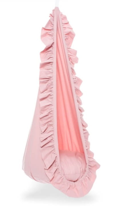 Estetyczne wykonanie i użycie wysokiej jakości tkanin sprawia, że huśtawka jest miła w dotyku, a wzmocniony, solidny uchwyt górny zapewnia bezpieczeństwo użytkowania (wytrzymuje do 80 kg obciążenia). Wewnątrz kokonu znajduje się okrągłe, wygodne siedzisko - poduszka w poszewce zapinanej na zamek, dzięki czemu łatwiej ją ściągnąć do prania.
