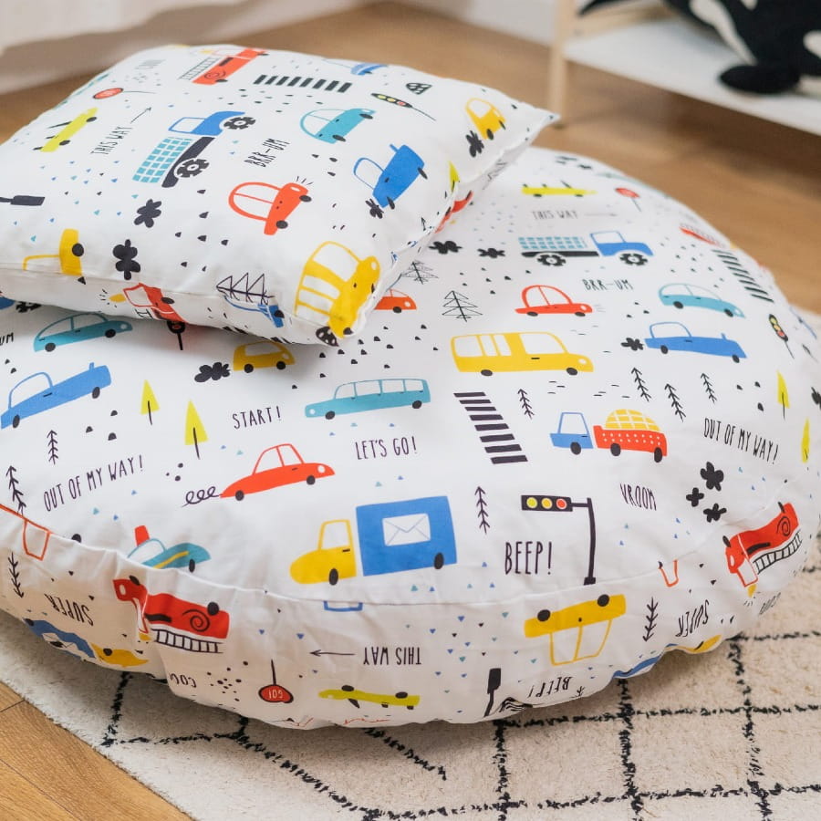 - miękka duża poduszka wypełniona puchem silikonowym (90 cm średnicy i 30 cm wysokości)