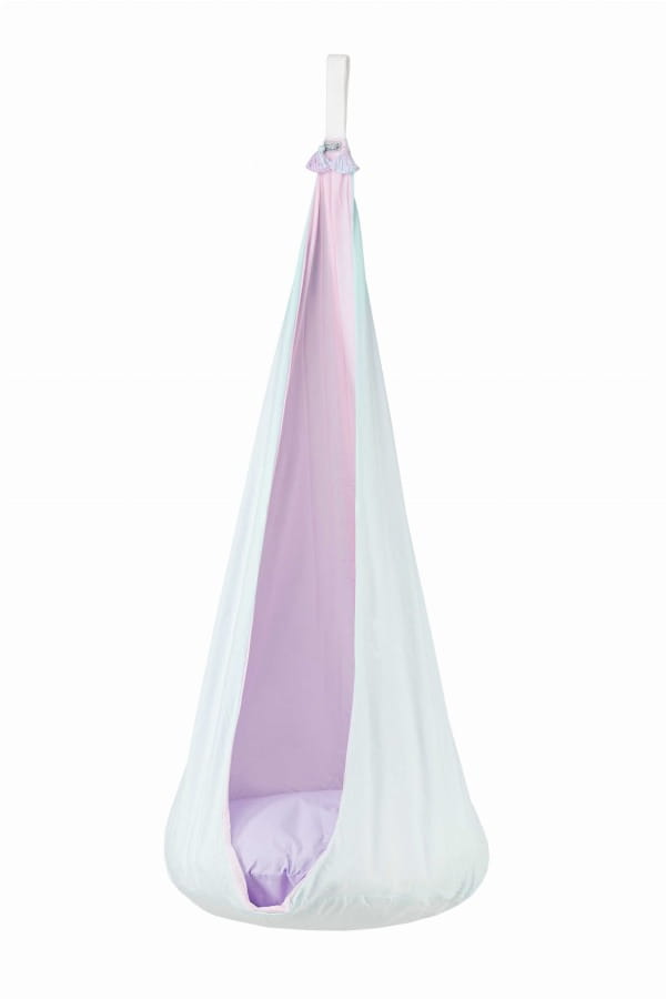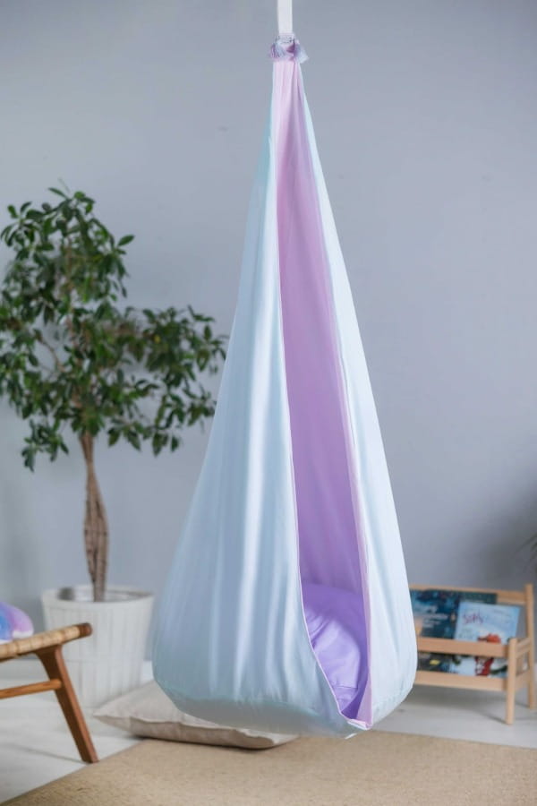 Kokon "Liliowy sen" to urocza huśtawka w jasnych pastelowych barwach.