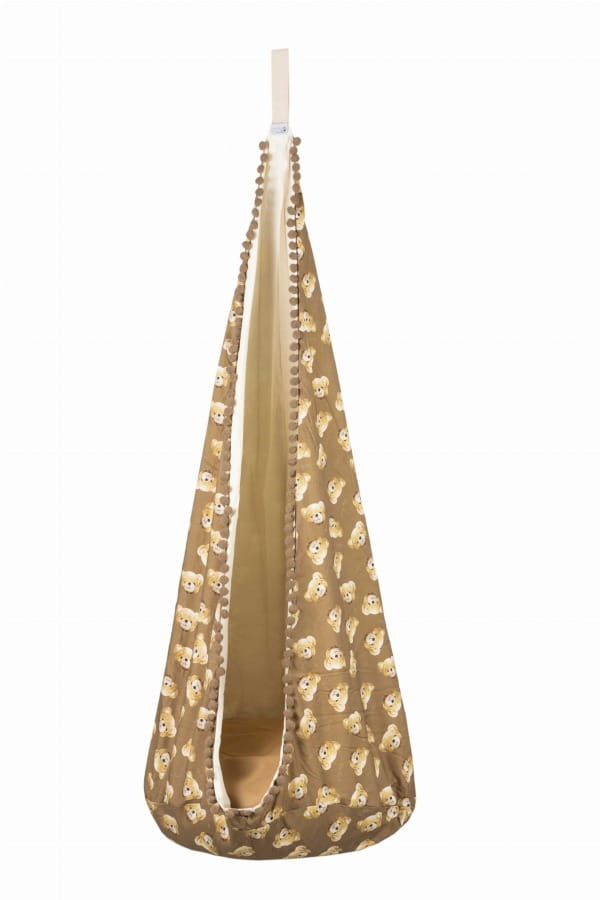 "Teddy Bear" to przytulna huśtawka w ciepłych barwach, z wizerunkiem pluszowego misia. Dzięki uniwersalnej kolorystyce pasować będzie zarówno dla chłopca, jak i dla dziewczynki.