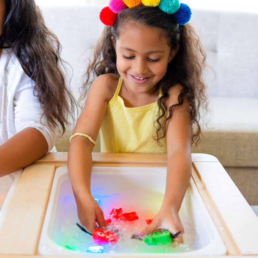 - Zabawka do kąpieli – dzieci uwielbiają obserwować, jak kostki świecą i pływają w wodzie.