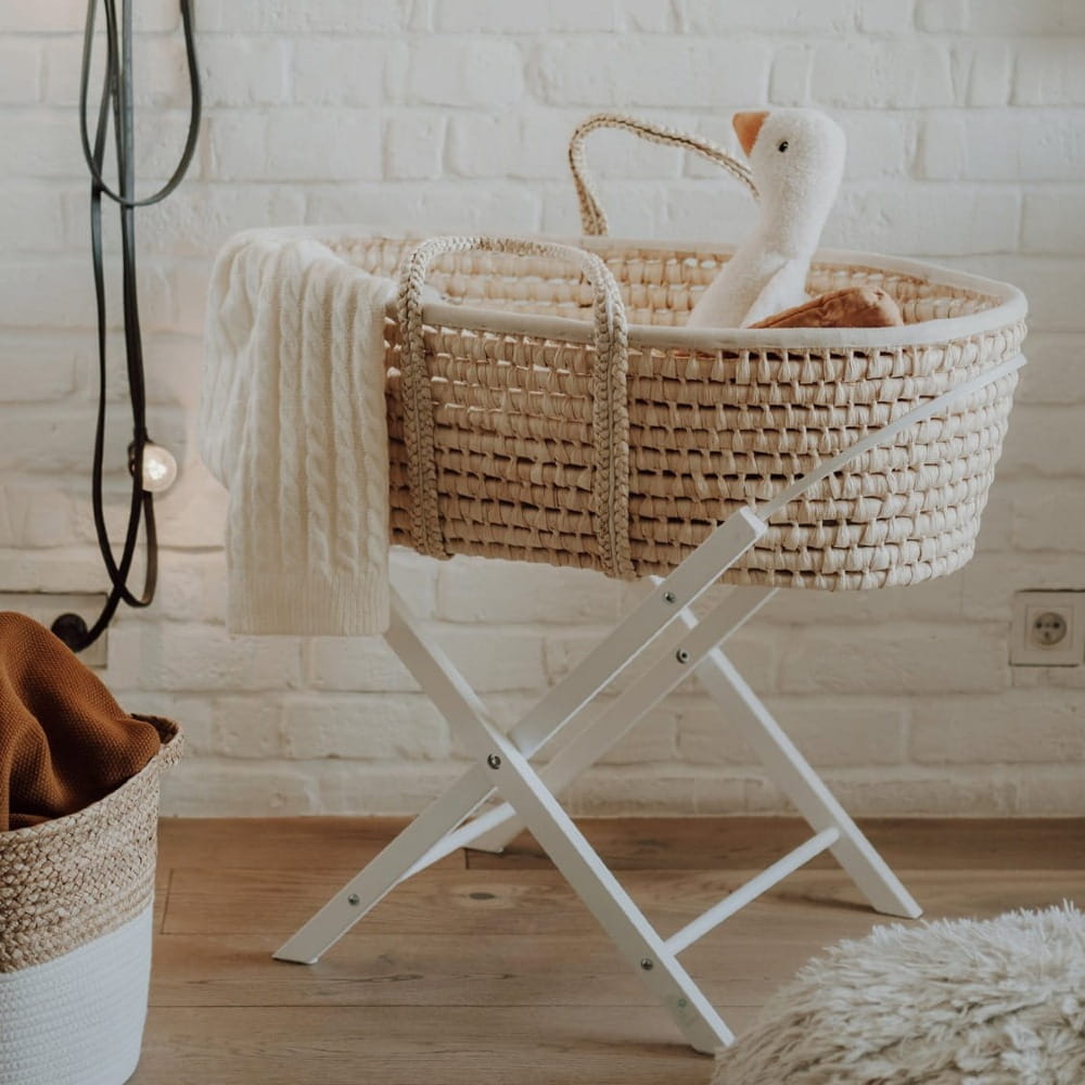 Kosz Mojżesza z materacykiem i stojakiem w białym kolorze