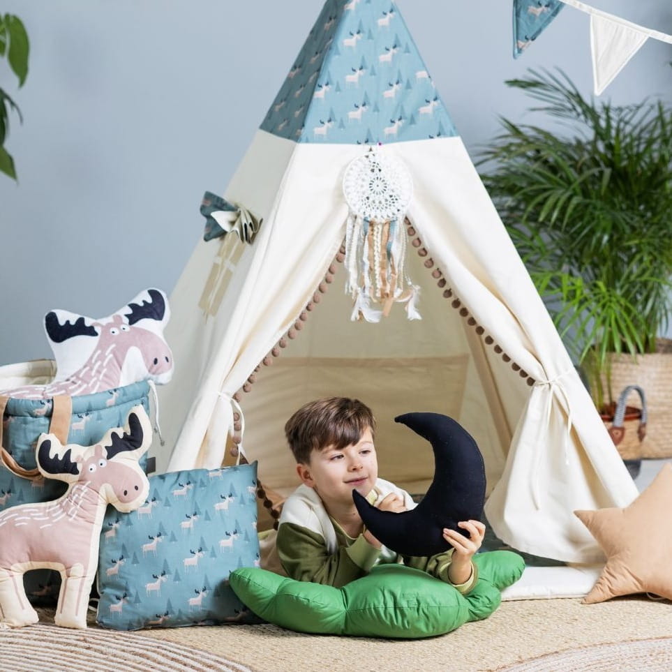 Któż z nas nie budował domków z koców czy prześcieradeł? Największym dramatem był moment gdy po zabawie mama kazała wszystko odłożyć na swoje miejsce. Dziś na szczęście mamy namioty tipi, które stanowię idealne miejsce do zabawy i wspaniały element dekoracyjny pokoju dziecka, a w razie konieczności złożenia nie zajmują dużo miejsca.