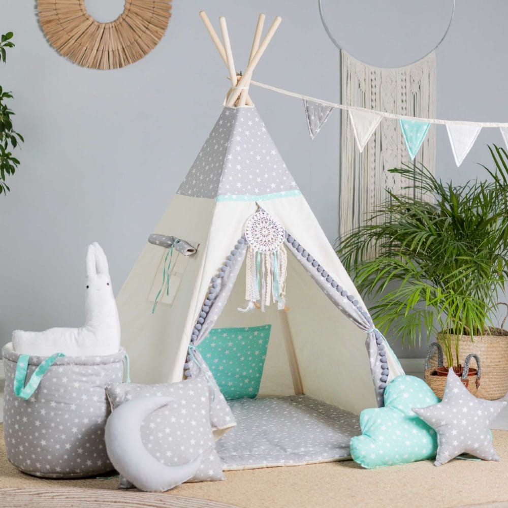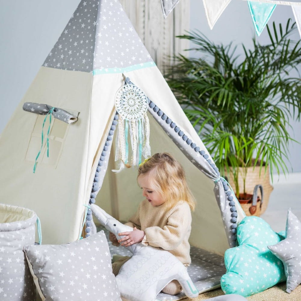 Któż z nas nie budował domków z koców czy prześcieradeł? Największym dramatem był moment gdy po zabawie mama kazała wszystko odłożyć na swoje miejsce. Dziś na szczęście mamy namioty tipi, które stanowię idealne miejsce do zabawy i wspaniały element dekoracyjny pokoju dziecka, a w razie konieczności złożenia nie zajmują dużo miejsca.