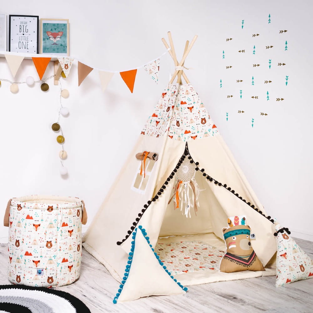 Któż z nas nie budował domków z koców czy prześcieradeł? Największym dramatem był moment gdy po zabawie mama kazała wszystko odłożyć na swoje miejsce. Dziś na szczęście mamy namioty tipi, które stanowię idealne miejsce do zabawy i wspaniały element dekoracyjny pokoju dziecka, a w razie konieczności złożenia nie zajmują dużo miejsca.