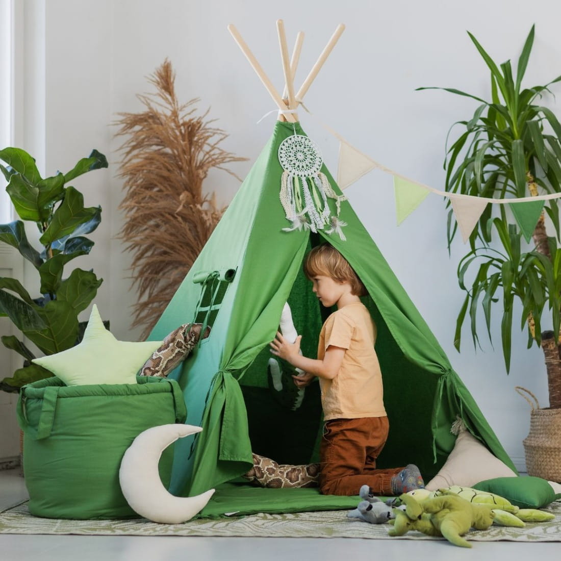 Któż z nas nie budował domków z koców czy prześcieradeł? Największym dramatem był moment gdy po zabawie mama kazała wszystko odłożyć na swoje miejsce. Dziś na szczęście mamy namioty tipi, które stanowię idealne miejsce do zabawy i wspaniały element dekoracyjny pokoju dziecka, a w razie konieczności złożenia nie zajmują dużo miejsca.
