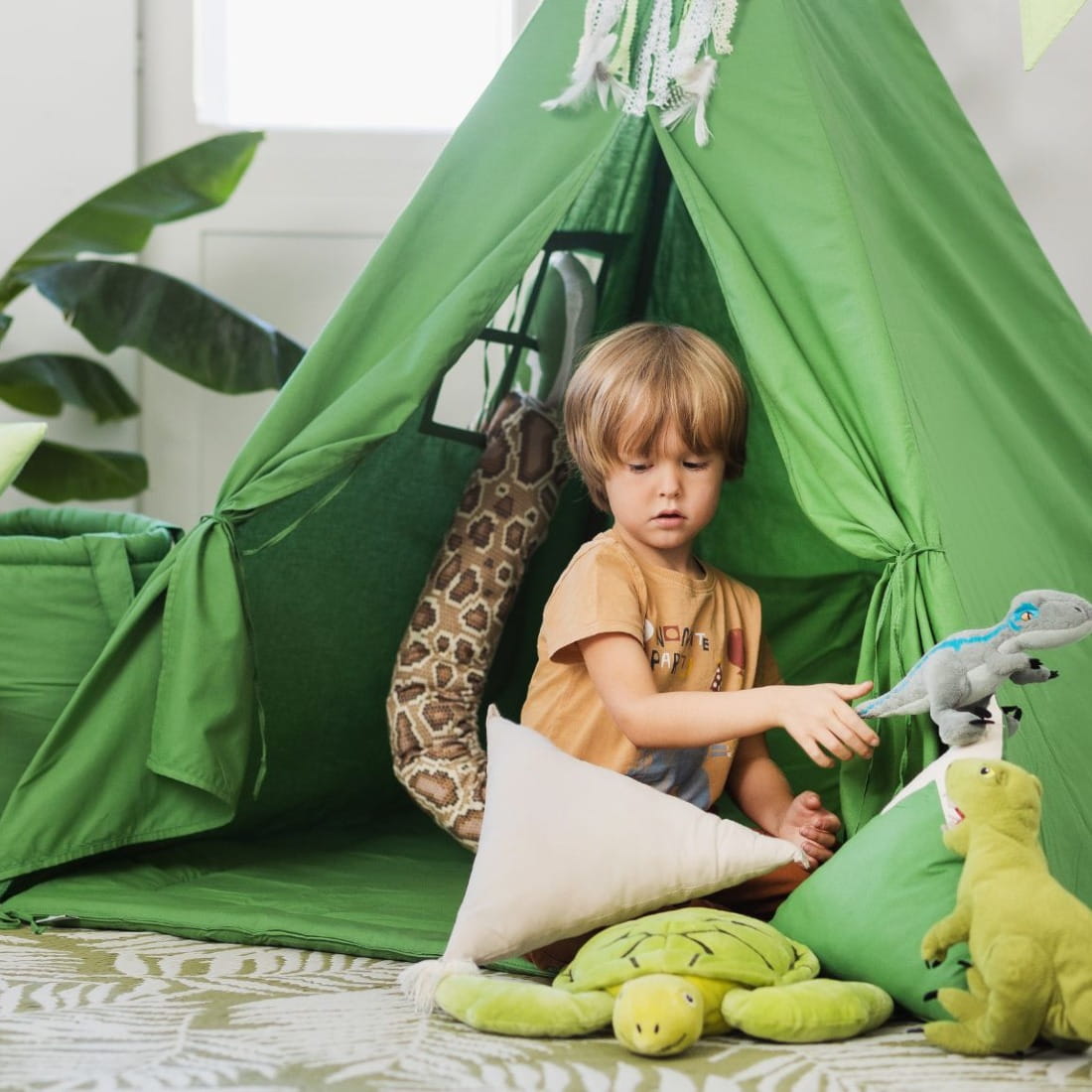 Tipi to bezpieczny azyl dla Twojej pociechy. Jest miejscem, gdzie dziecko może się schować, wyciszyć i odpocząć od bodźców zewnętrznych. Sprzyja również rozwojowej zabawie, kształtując wyobraźnię i kreatywność. Stanowi pewnego rodzaju własne terytorium, gdzie dziecko może zamienić się nie tylko w Indianina, ale także w kosmonautę w rakiecie, księżniczkę we własnym królestwie, czy pirata na statku. Jest miejscem, gdzie maluch może bawić zarówno samodzielnie jak i z rówieśnikami, czy rodzicami podczas wieczornego czytania książek. W cieplejsze dni można wynieść tipi do ogrodu, umilając przy tym zabawę na świeżym powietrzu i dając schronienie przed słońcem.
