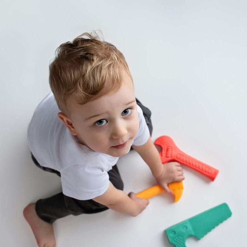 Zestaw miękkich narzędzi marki Mom's Care, to doskonała rozwojowa zabawka, rekomendowana dla dzieci powyżej 10 miesiąca życia. Składa się z 3 elementów: piły, młotka i klucza. Energetyzujące połączenie kolorów, miękka struktura i nowoczesny charakter nadają wyjątkowości tej zabawce.