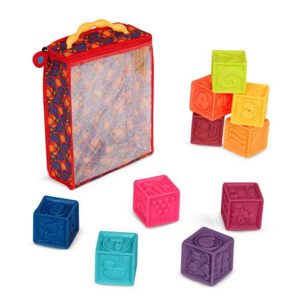 Kolorowe klocki sensoryczne to doskonała zabawka edukacyjna, która pobudza zmysły i wspiera rozwój dziecka już od 6. miesiąca życia. Na każdej ściance znajdują się płaskorzeźbione liczby od 1 do 10, przyjazne zwierzątka oraz różne zdobienia, które stanowią wyjątkowe bodźce sensoryczne dla małych rączek.