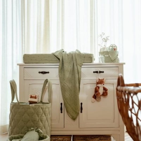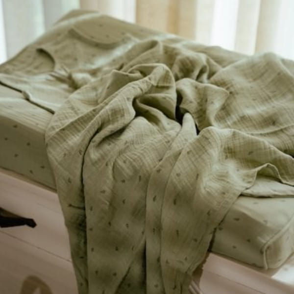 - Łatwość użytkowania: Muślin Pure Sage nie wymaga prasowania – jego naturalna tekstura staje się coraz miększa z każdym kolejnym praniem, co doceni każdy zabiegany rodzic.