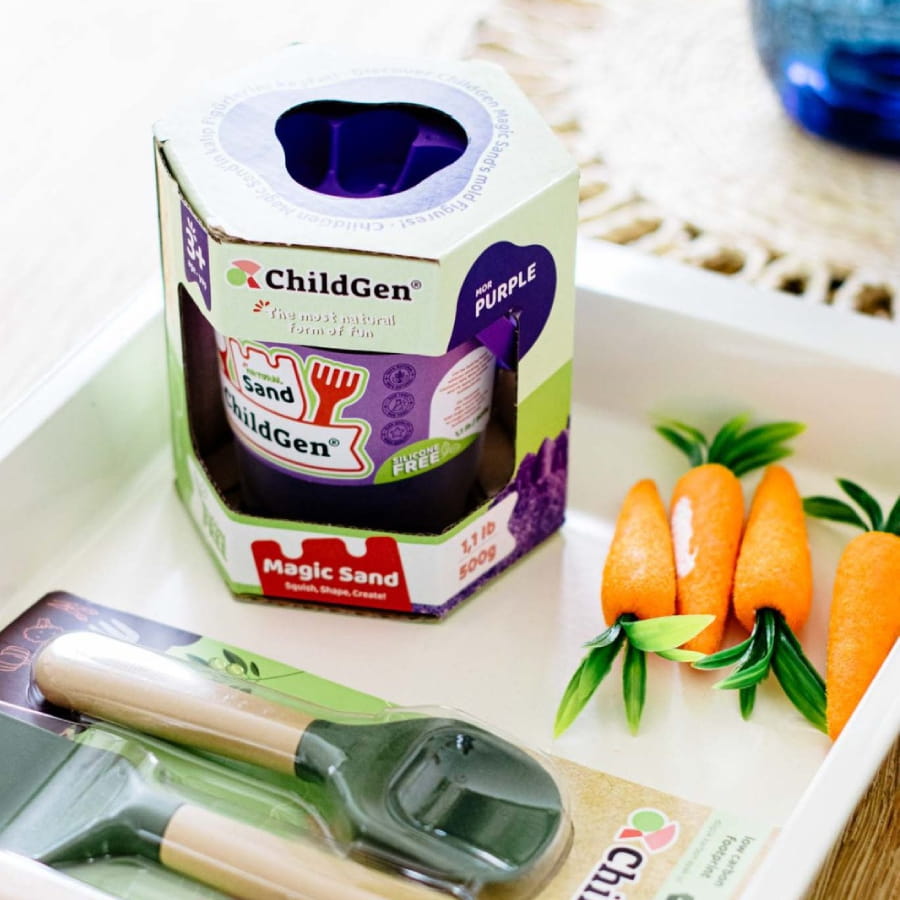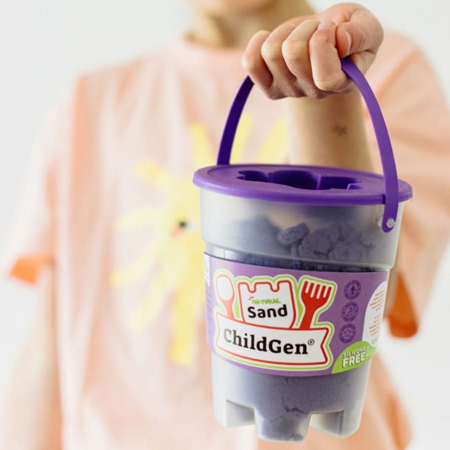 ChildGen stawia na naturalność – piasek produkowany jest z piasku morskiego, naturalnego polimeru i aromatów spożywczych. Miękki, pachnący i w pełni bezpieczny.