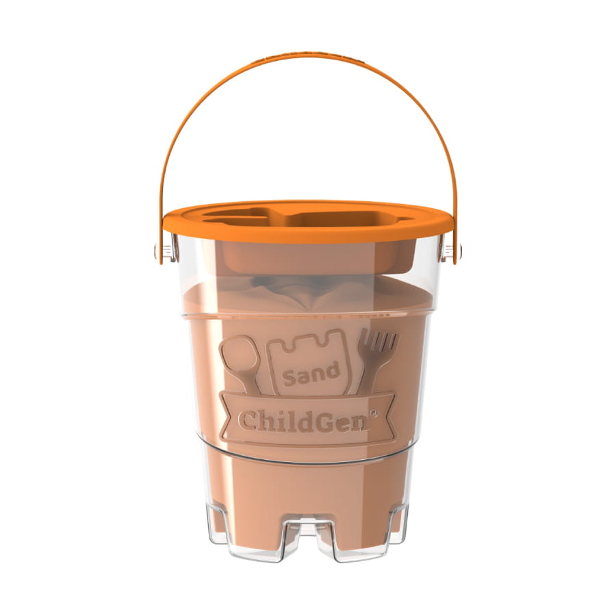 Pomarańczowy piasek kinetyczny ChildGen to świetny prezent dla dzieci od 3 lat. Foremka w zestawie pozwala na tworzenie kreatywnych form.