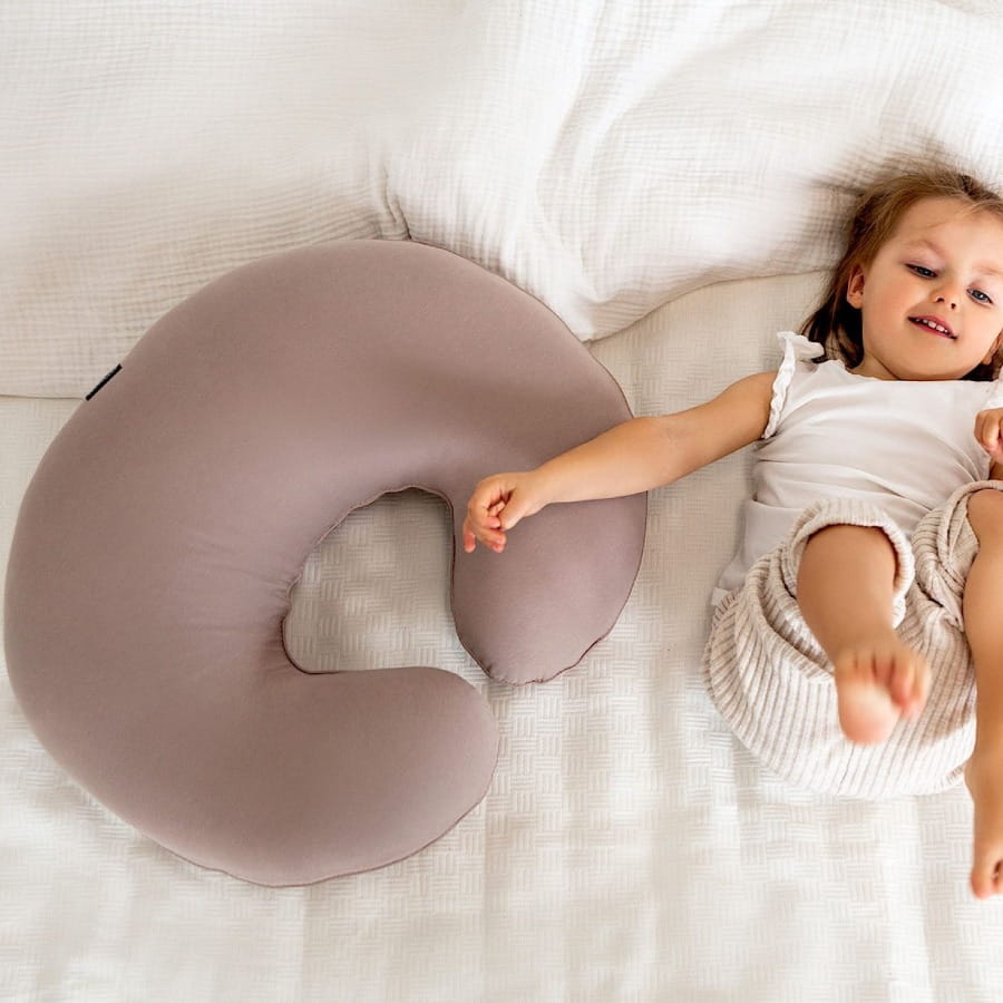 Środkowa część poduszki została lekko pogrubiona i powiększona, dzięki czemu dziecko jest zawsze ułożone na właściwej wysokości – tuż przy piersi mamy. Taka budowa umożliwi mamie przyjęcie wygodnej, wyprostowanej, odciążającej kręgosłup pozycji podczas karmienia piersią, równocześnie zapewniając dziecku stabilne i bezpieczne oparcie.