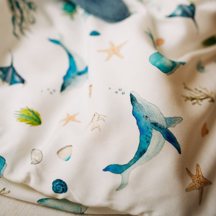 Oddychająca tkanina bambusowa ma właściwości antybakteryjne i antygrzybiczne. Doskonale chłonie wodę oraz szybko schnie, ma działanie termoregulujące i jest niezwykle delikatna dla wrażliwej skóry maluszka.