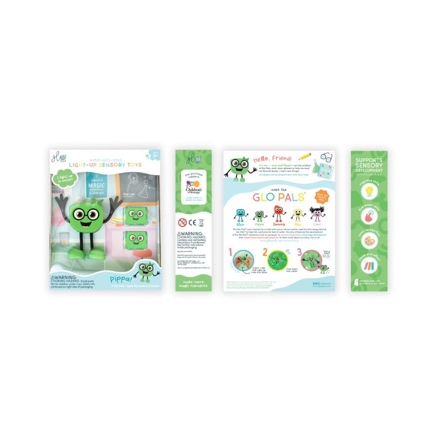 Pippa to najmniejsza z kumpli Glo Pals – urocza, zielona postać w okularach, która uwielbia czytać! Po wieczornej kąpieli z chęcią poczyta bajkę razem z Twoim dzieckiem. Odkryj wyjątkowy wodny świat sensoryczny z Pippą i jej przyjaciółmi!