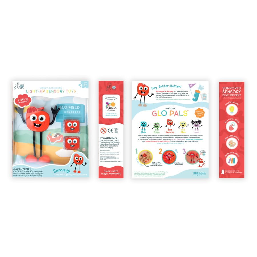 Sammy to czerwony jak truskawka kumpel Glo Pals, znany ze swoich długich nóg i szybkości! Choć bywa niezdarny, zawsze potrafi prześcignąć swoich przyjaciół. Spraw, by kąpiel Twojego dziecka była pełna świateł i kolorów z Sammy!