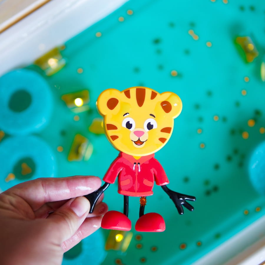 Tygrysek Daniel – kolorowy, radosny kumpel, który kocha zabawę i świeci w wielu barwach! Idealny towarzysz wodnych przygód i sensorycznych odkryć.