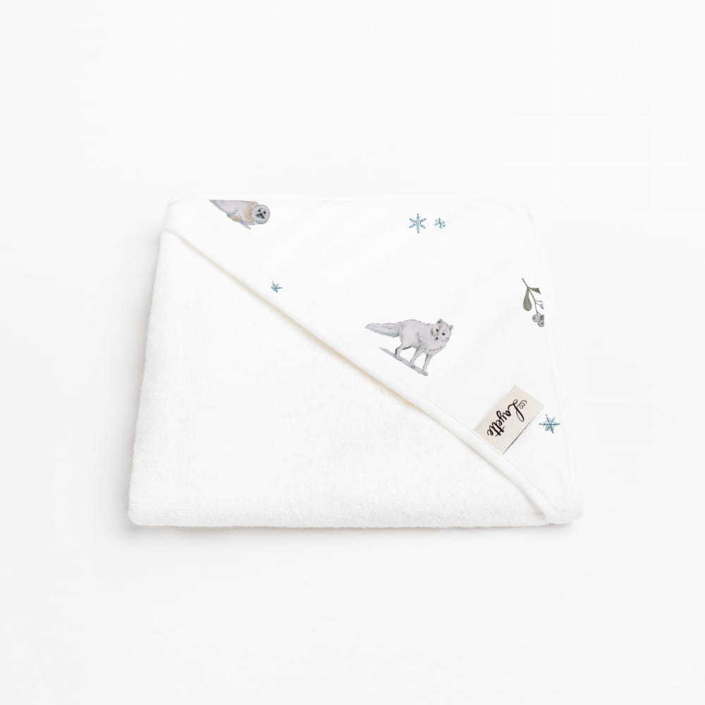 Miękki, certyfikowany i szyty ręcznie — to prezent, który każda mama doceni. Nadruk na kapturku może się nieznacznie różnić między egzemplarzami, ponieważ każdy wycięty jest z innego fragmentu wzoru tkaniny.