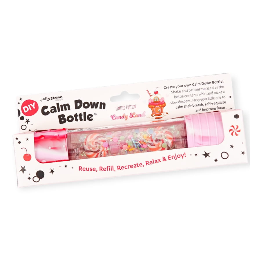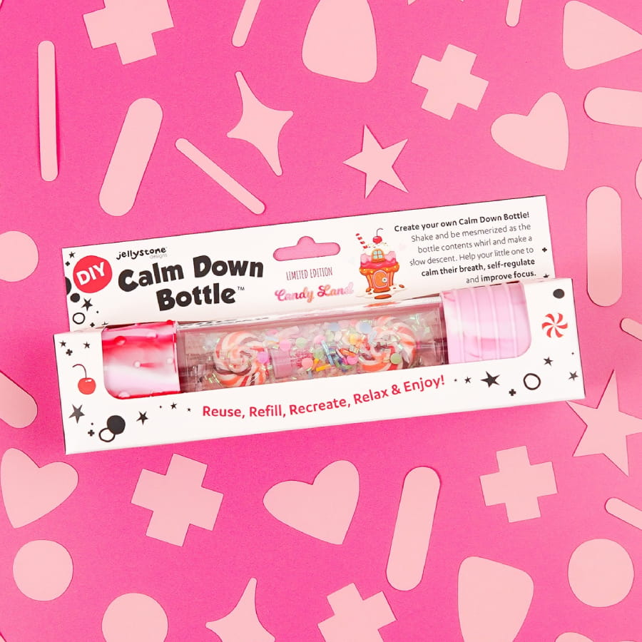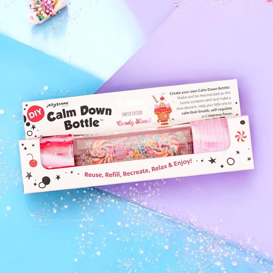 Butelka sensoryczna DIY Słodkości od Jellystone Designs to wyjątkowy zestaw, który pozwala dzieciom stworzyć własną, kolorową butelkę pełną „cukierkowych” efektów. Obserwowanie jej zawartości uspokaja, wycisza i pobudza wyobraźnię.