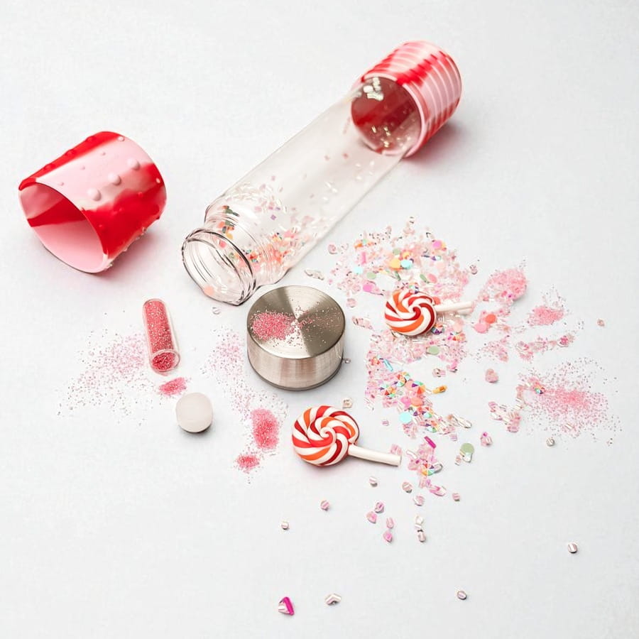 Dzieci mogą potrząsać butelką, aby obserwować ruch elementów, co wspiera koordynację ręka-oko. Tworzenie słodkich aranżacji z brokatem i pomponami rozwija kreatywność, zdolności manualne i uczy cierpliwości.