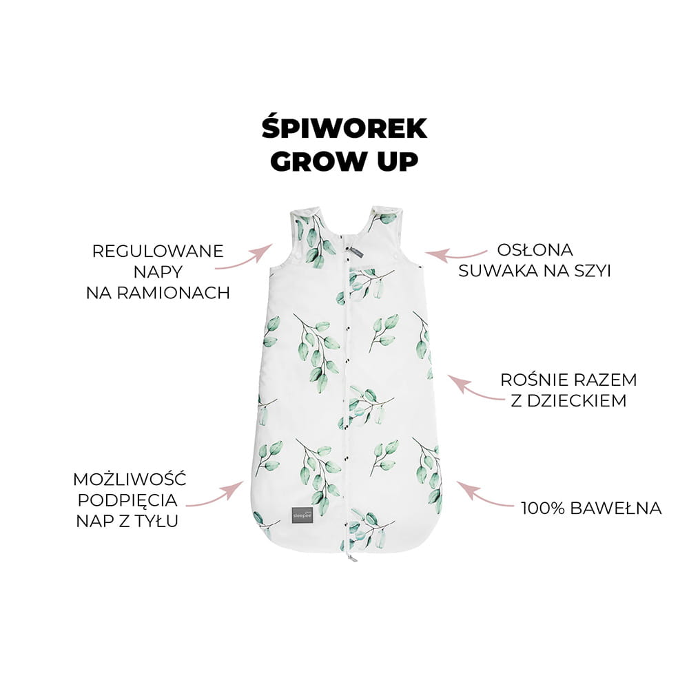 Śpiworek Sleepee Grow Up wykonany jest z 100% oddychającej mięciutkiej bawełny zapewniającej odpowiednią temperaturę podczas snu malucha. Dzięki temu dziecko nie przegrzeje się ale także nie zmarznie podczas snu.