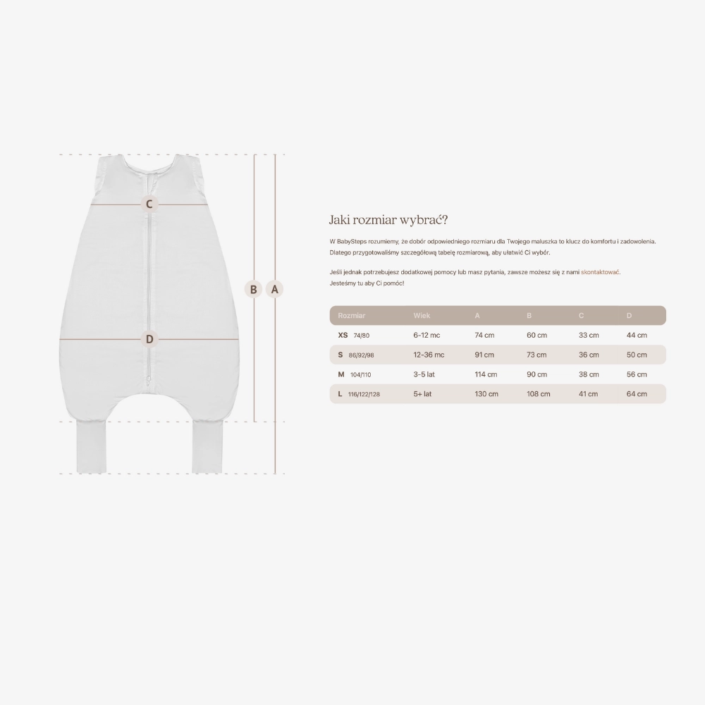Rozumiemy, że dobór odpowiedniego rozmiaru dla Twojego maluszka to klucz do komfortu i zadowolenia. Dlatego przygotowaliśmy szczegółową tabelę rozmiarową, aby ułatwić Ci wybór.