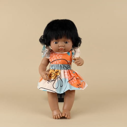 Sukienka idealnie pasuję na lalkę Miniland 38 cm.