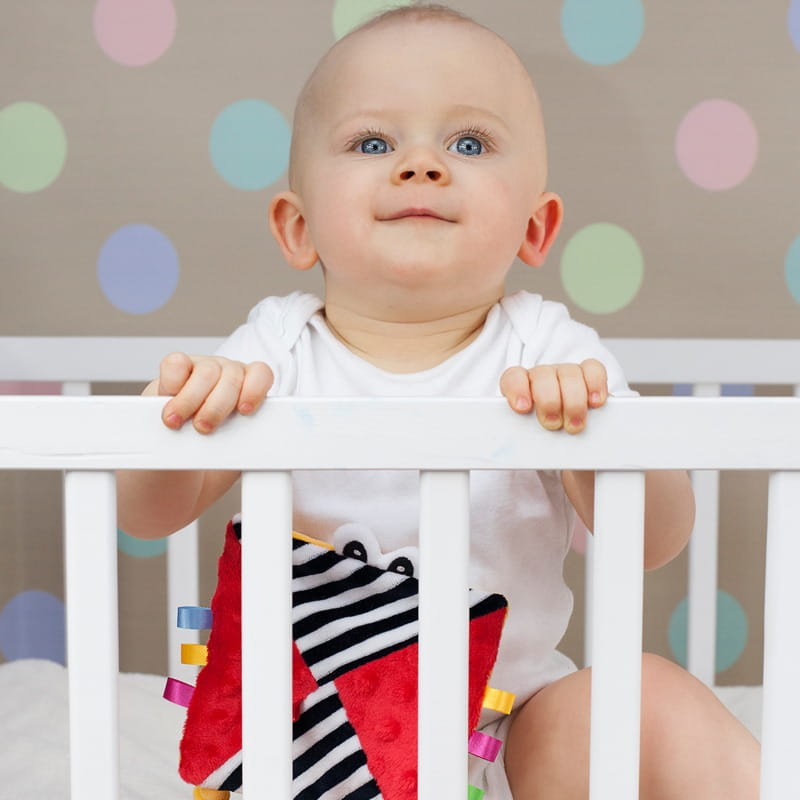 - Rozwija słuch – delikatny szelest folii przyciąga uwagę i działa kojąco na maluszka.