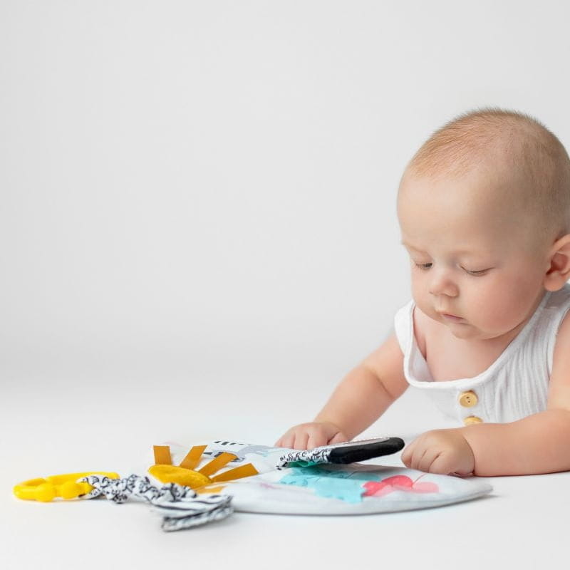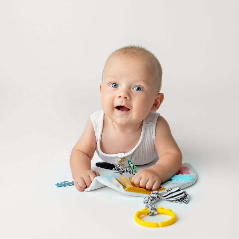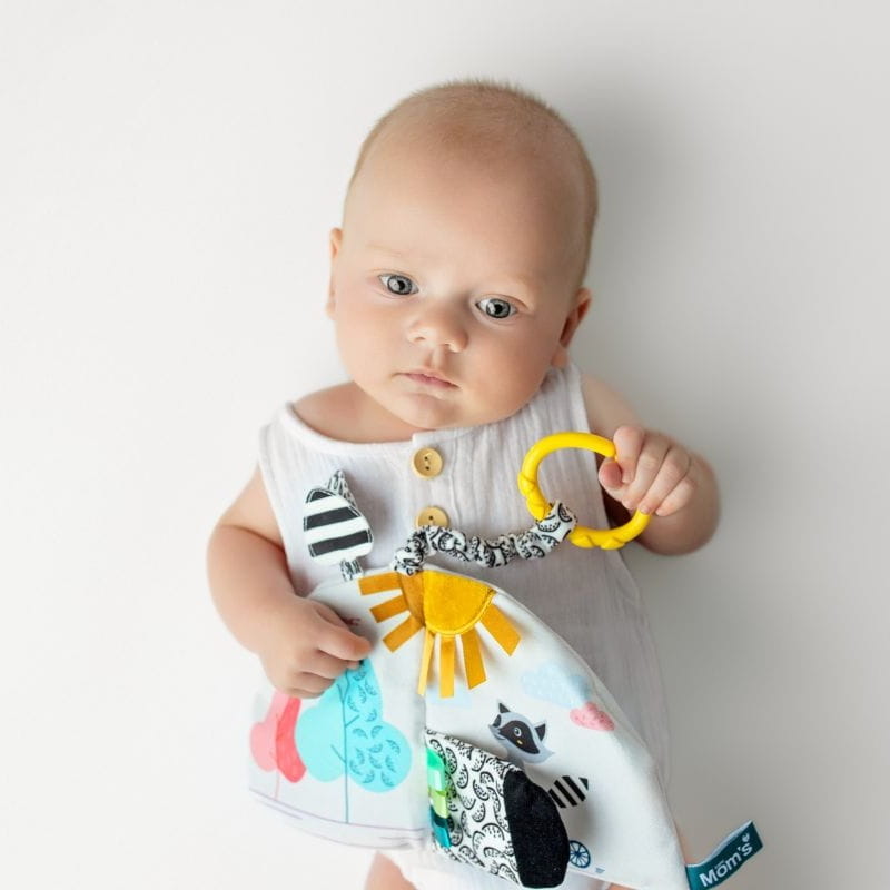 Miękka książeczka sensoryczna Szop Pedro marki Mom’s Care wspiera rozwój wzroku, słuchu i dotyku dziecka już od pierwszych dni życia. Dzięki kontrastowym kolorom, szeleszczącym elementom i bezpiecznemu lusterku maluch uczy się obserwacji, koncentracji i poznawania nowych bodźców.