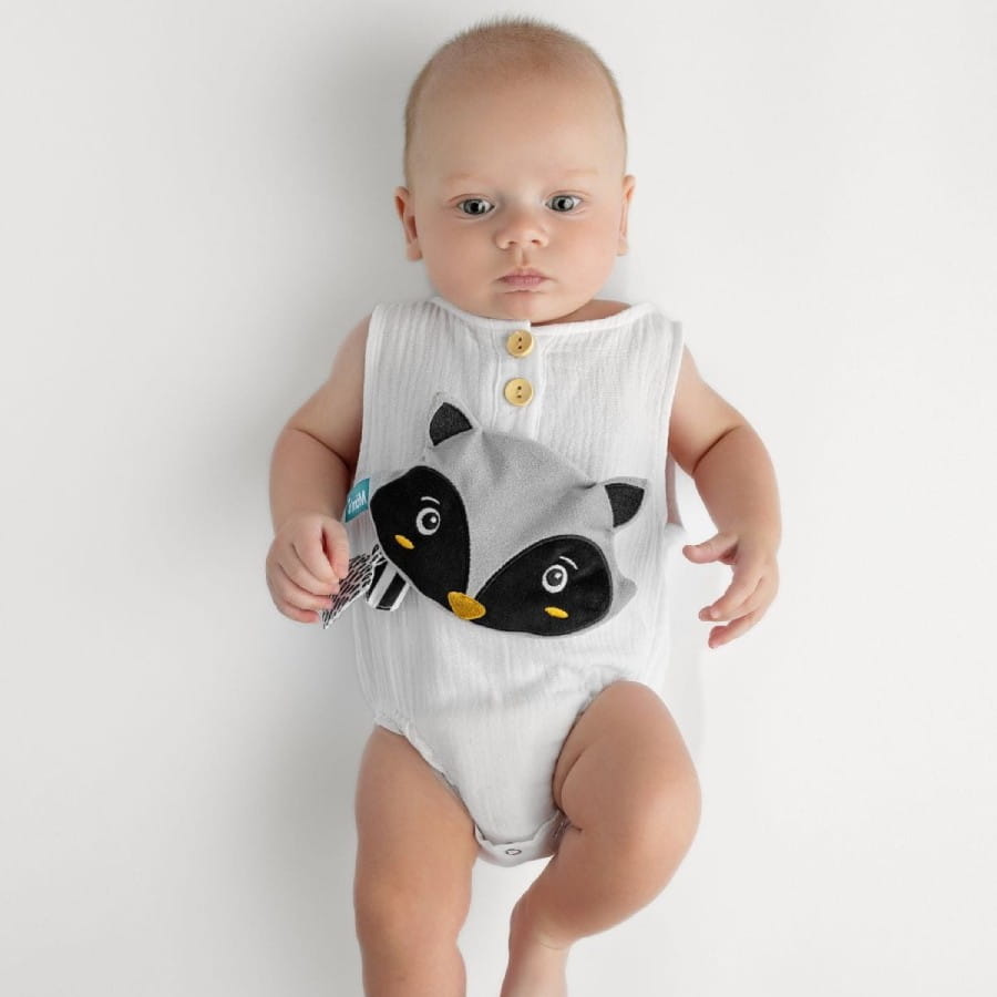 - Kontrastowy design – biało-czarne elementy rozwijają zmysł wzroku.
