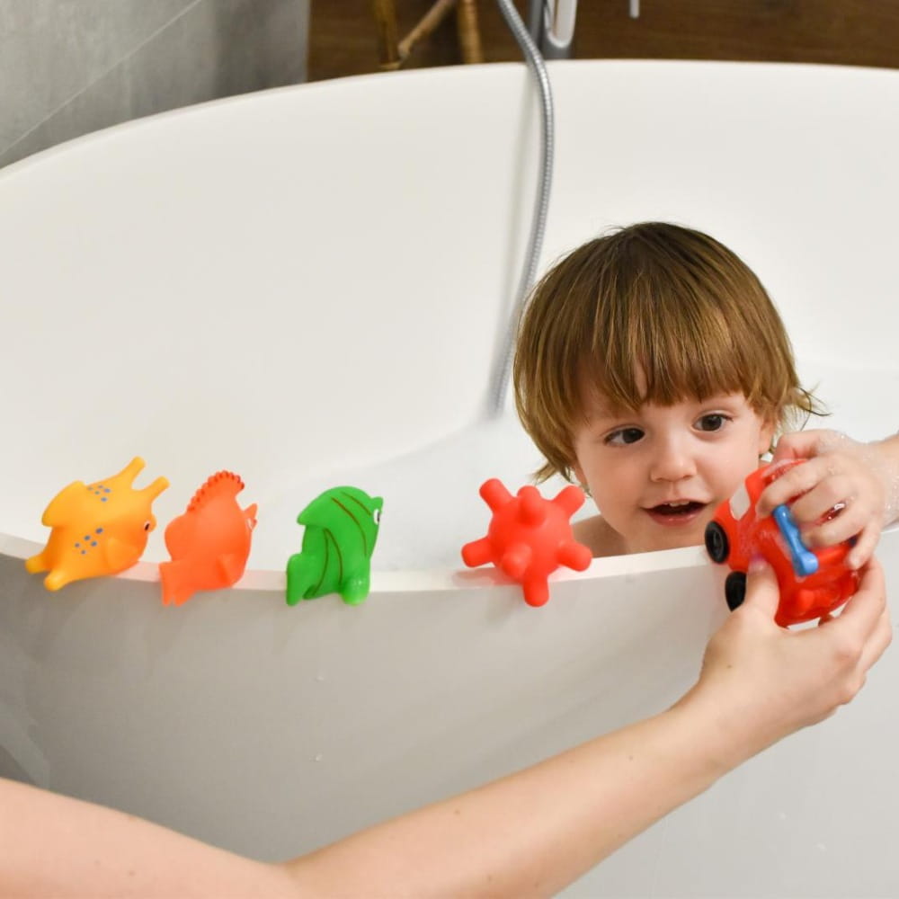 Bezpieczne zabawki do kąpieli, które produkujemy od 40 lat nadal cieszą się ogromnym zainteresowaniem z Waszej strony. Posiadają wyraziste kolory i ciekawe wzory, które zachęcają dzieci do zabawy. Dzięki urozmaiconym kształtom i wypustkom stymulują zmysł dotyku.