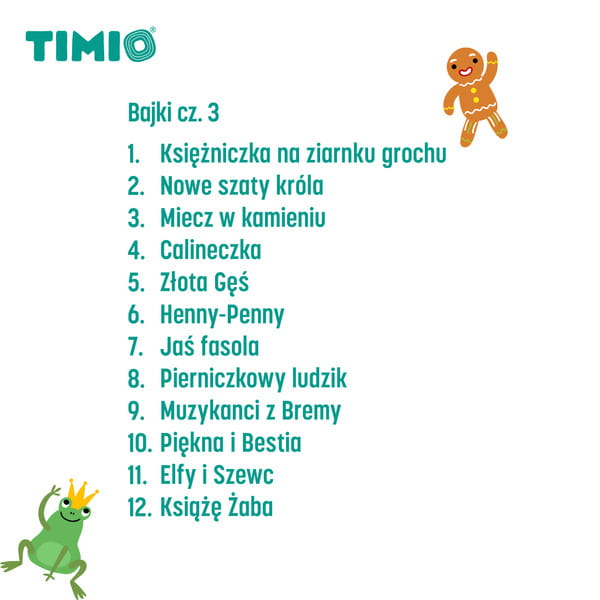 - Bajki cz. 2 – 12 klasycznych baśni, każda trwająca ok. 6 minut (ponad 1 godzina słuchania)