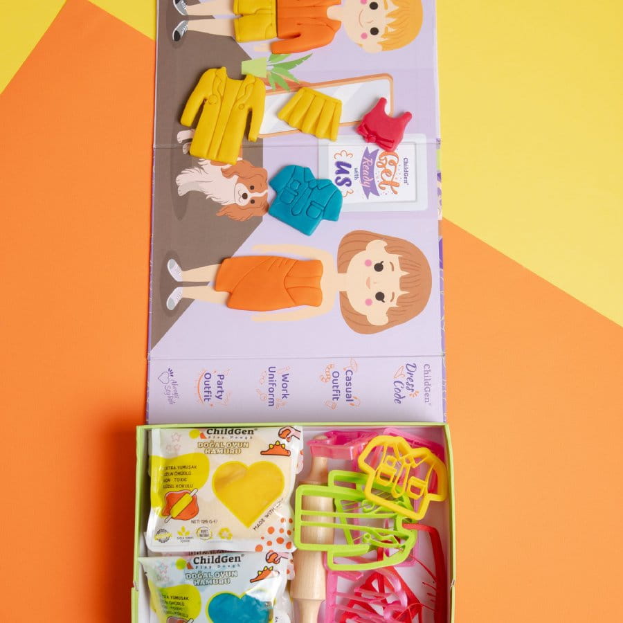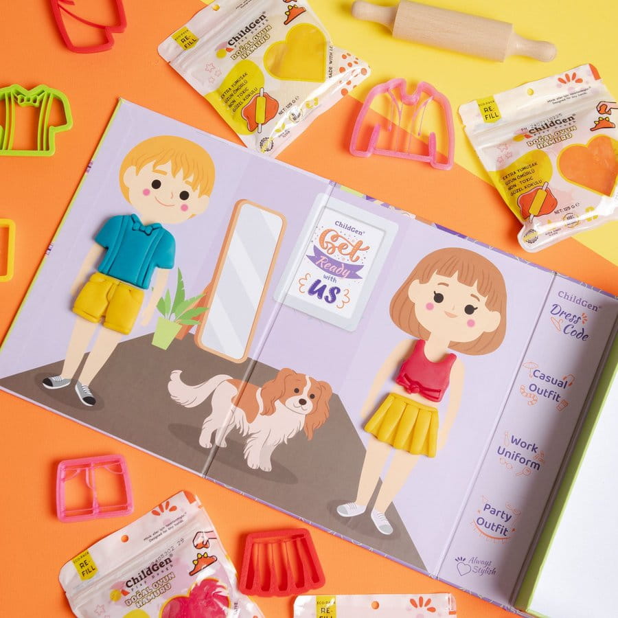Na okładkach pudełka czekają dwie wspaniałe aktywności – na jednej z nich dzieci mogą ozdobić twarze postaci, tworząc fantazyjne fryzury, dodając akcesoria takie jak spinki czy kolczyki. Na drugiej – mogą zaprojektować stroje dla chłopca i dziewczynki, wykorzystując ciastolinę oraz specjalne foremki do tworzenia ubrań.